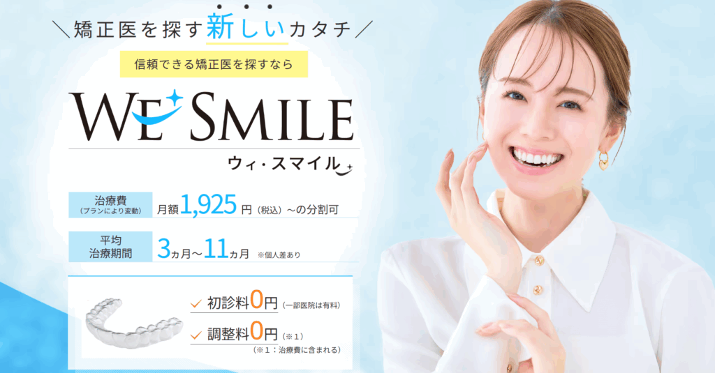 ウィスマイル(We Smile)は、できるだけ手軽に矯正を始めたい方に注目されているマウスピース矯正サービスです。